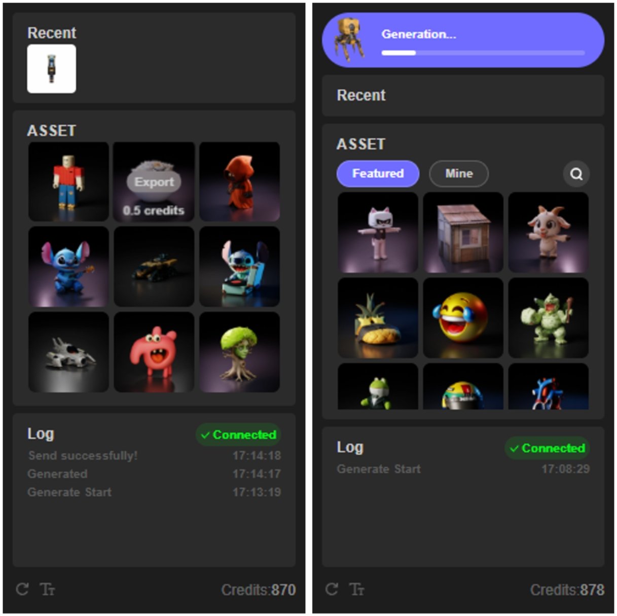 You can also import featured assets or generated assets by hovering on the target asset and press the emerged 'Export' button